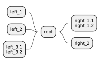 <uml> @startmindmap + root **:right_1.1 right_1.2; ++ right_2 left side -- left_1 -- left_2 **:left_3.1 left_3.2; @endmindmap </uml>